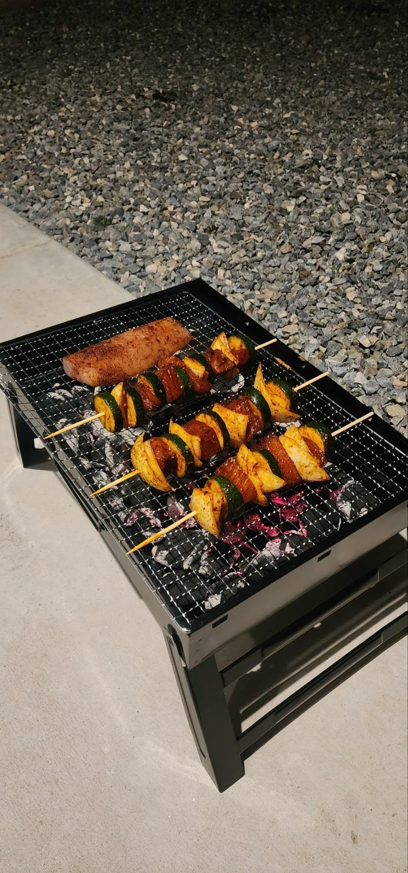 Solo coloca el carbón, enciéndelo y ajusta la parrilla a la altura que prefieras. En minutos estarás cocinando tu carne o verduras favoritas