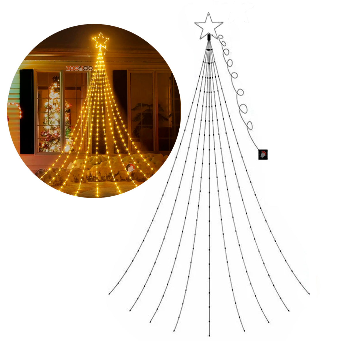 Incluye estrella superior y 9 tiras flexibles. Ideal para árboles, balcones y jardines.